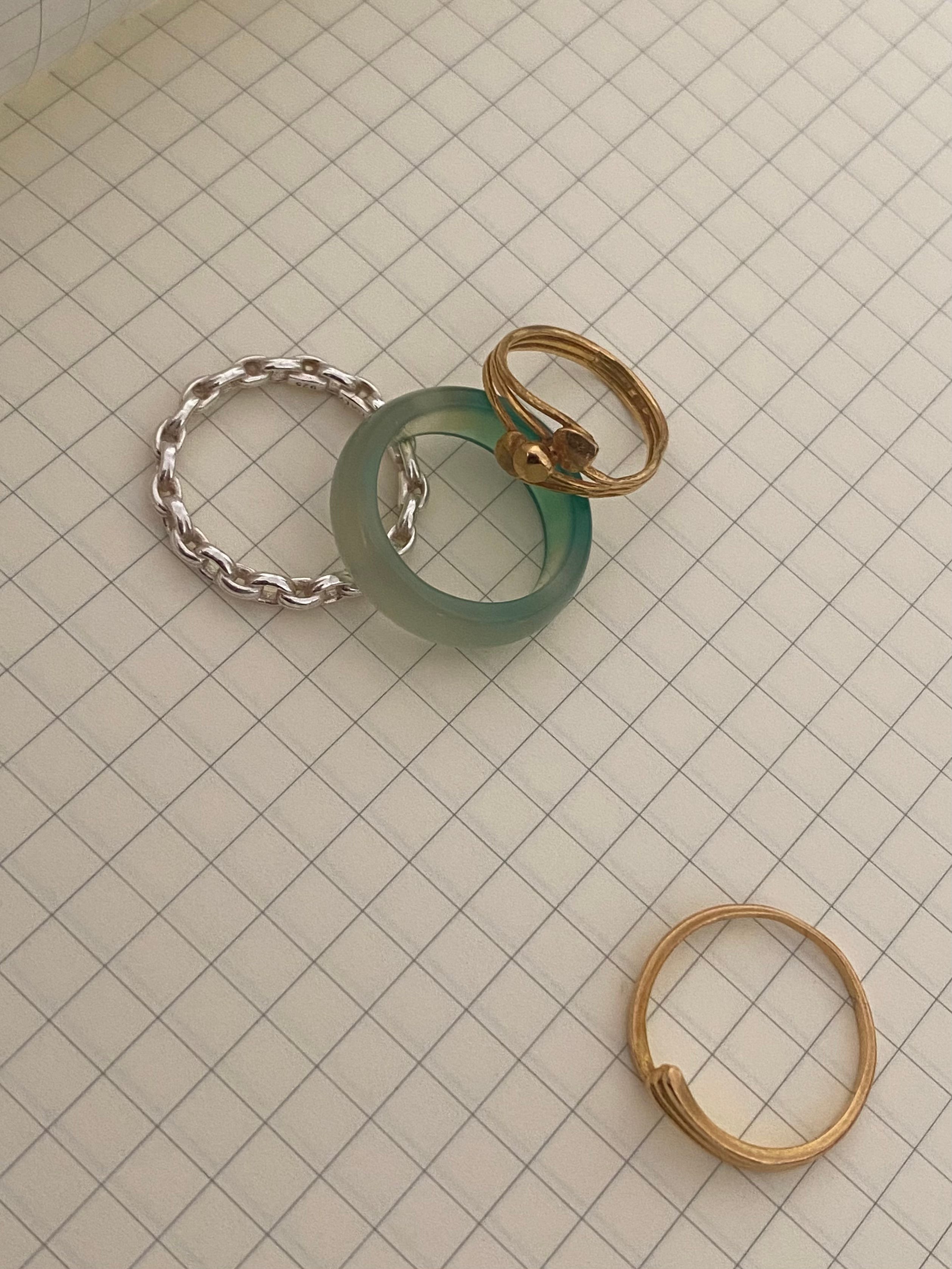 I suppose it's not a single object, but a set. I have rings I wear daily, and don't normally take off. Two thin gold rings my mother gave me, a green agate ring I got when I was on a school trip to Nanjing at 10 (my first taste of independence), and this silver chain I got from a job, which is the latest addition to the stack. I wear them specifically on my left ring finger, and on my right middle finger.